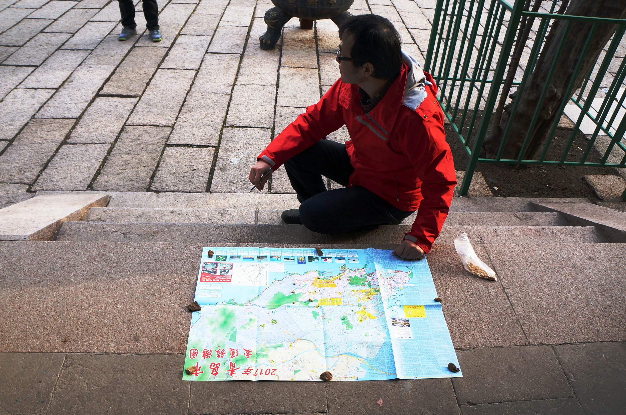 The selection at the temple or the divine principle: At the Daoist Hualou Temple a religious ceremony was performed under the guidance of abbess Leng, during which an oracle was consulted by casting two times eight beans over a map of Qingdao. Thus, 16 different locations were determined as a starting point for the rest of the project.