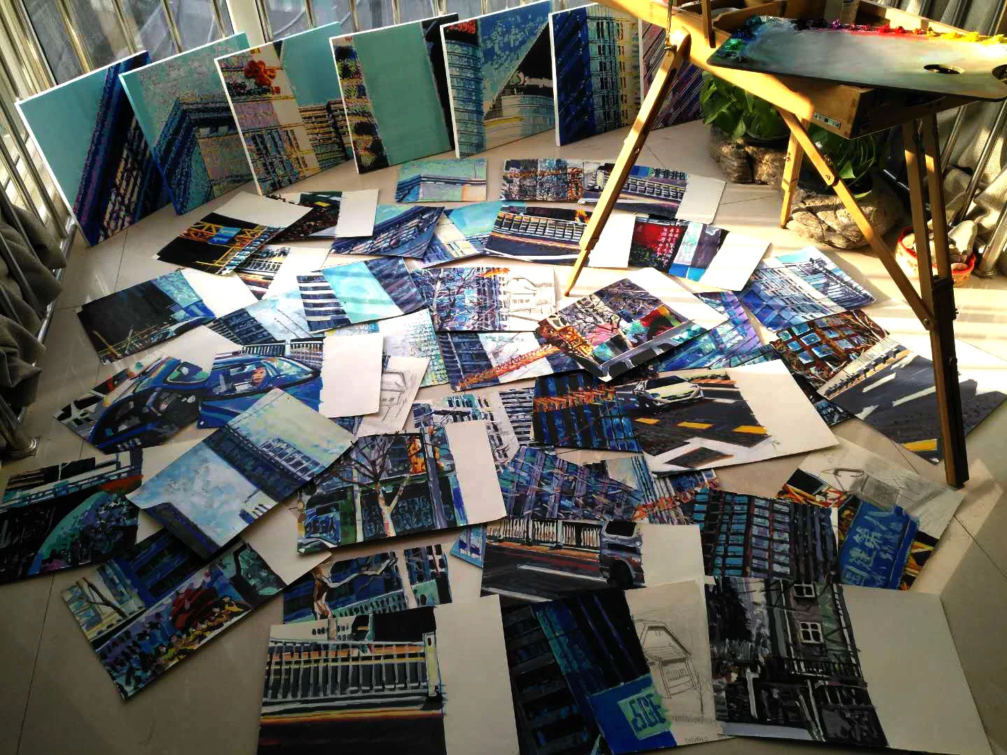 通常来说,在传统风景画的分割上,常常以地平线为基准,在布局上则多以天空与土地为主要关注对象。但是这种传统样式已经不适宜用来处理当代城市主题,现有绘画语汇也已经不足以反映崭新的视觉经验。这种视觉经验是以纵向化、多元化、碎片化为主要元素,它要求艺术家们在视觉艺术的回应上比之前更具力度,同时在表达方式上也要更加灵活。